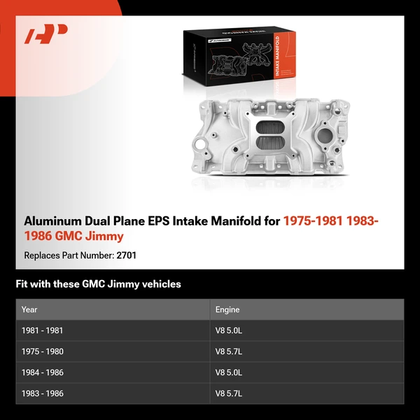 Aluminum Dual Plane EPS Intake Manifold for 1975-1981 1983-1986 GMC Jimmy
