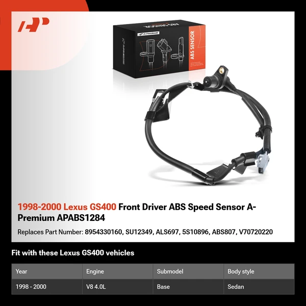 High quality A-Premium aftermarket parts - ABS Speed Sensor A-Premium offers a 3-Year unlimited mileage warranty on our expertly engineered ABS Speed Sensor Replacement for cars. Get the perfect car ABS Speed Sensor match for your vehicle by using our Vehicle Selector.