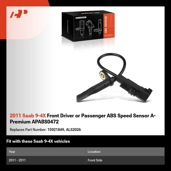 High quality A-Premium aftermarket parts - ABS Speed Sensor A-Premium offers a 3-Year unlimited mileage warranty on our expertly engineered ABS Speed Sensor Replacement for cars. Get the perfect car ABS Speed Sensor match for your vehicle by using our Vehicle Selector.